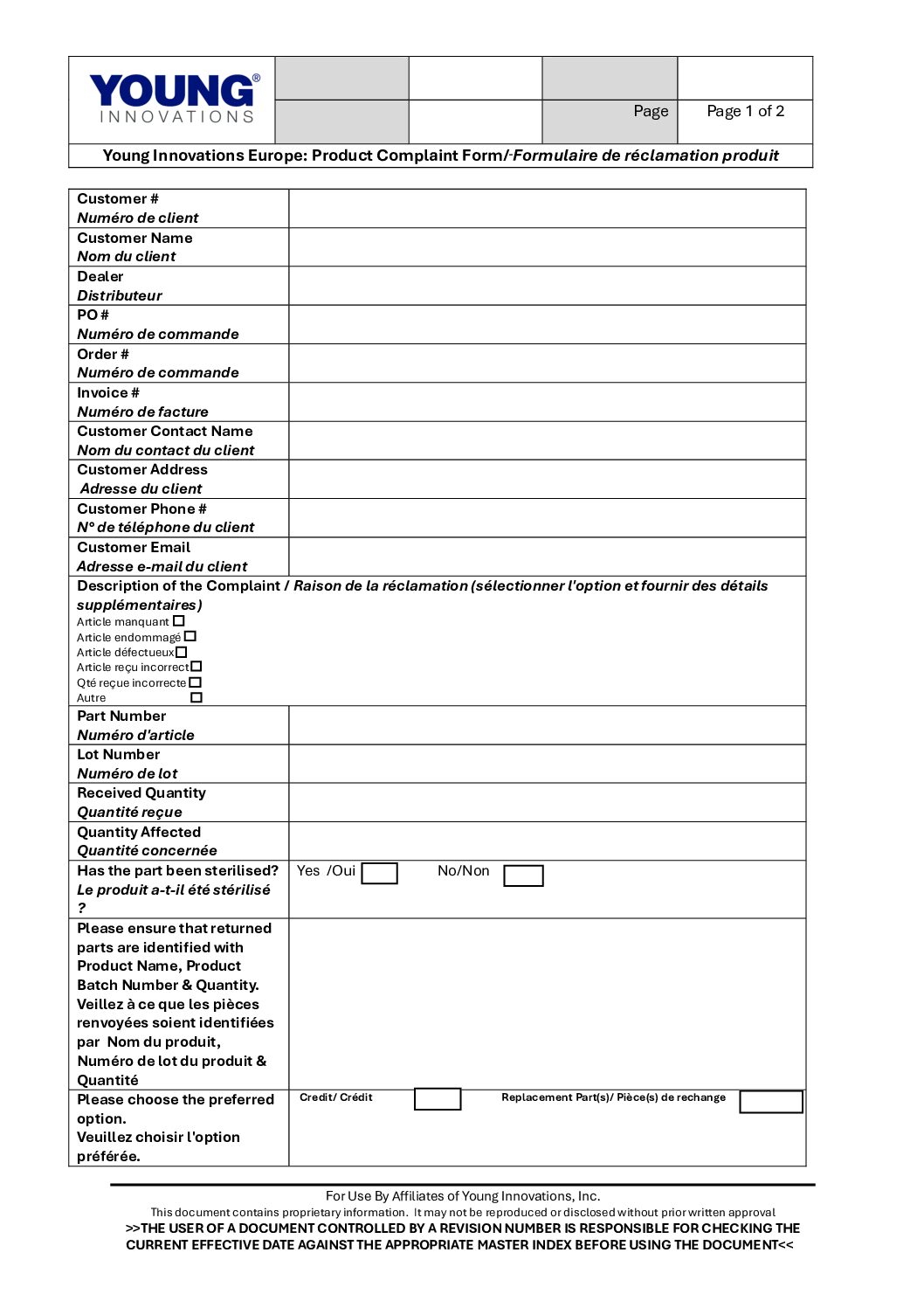 Si vous téléchargez le formulaire PDF, veuillez l’envoyer dûment rempli et accompagné de photos explicites de l’article concerné à l’adresse e-mail suivante : complaintseurope@younginnovations.com